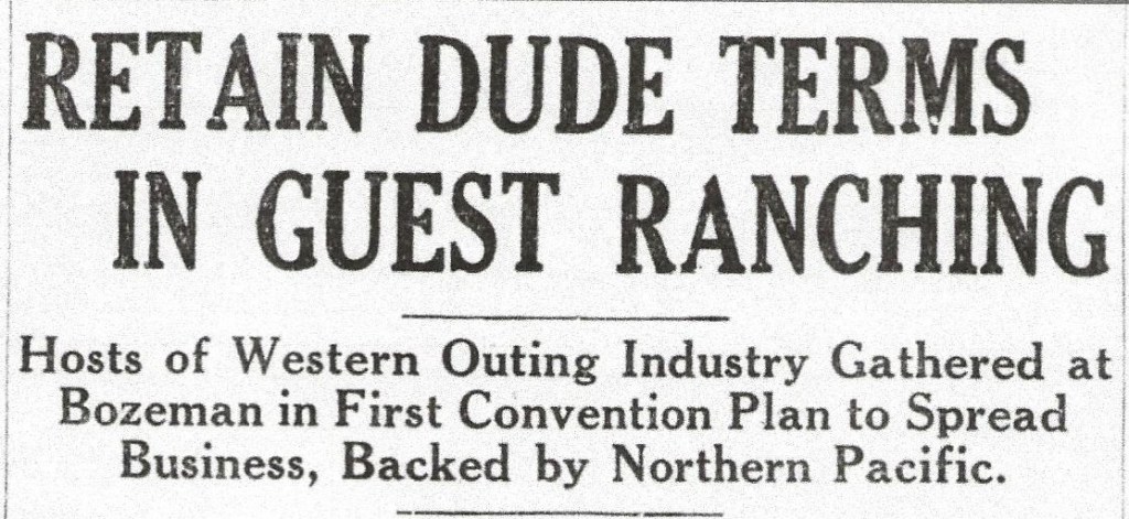 So, 95 years ago today, Larom and a group of dude ranchers from Montana and Wyoming got together to form an organization of their own. On September 27-28, 1926, they gathered at the Bozeman Hotel and by the time the meeting was over, the group had elected officers (with Larom as President, no surprise) and — more importantly — had chosen their name.