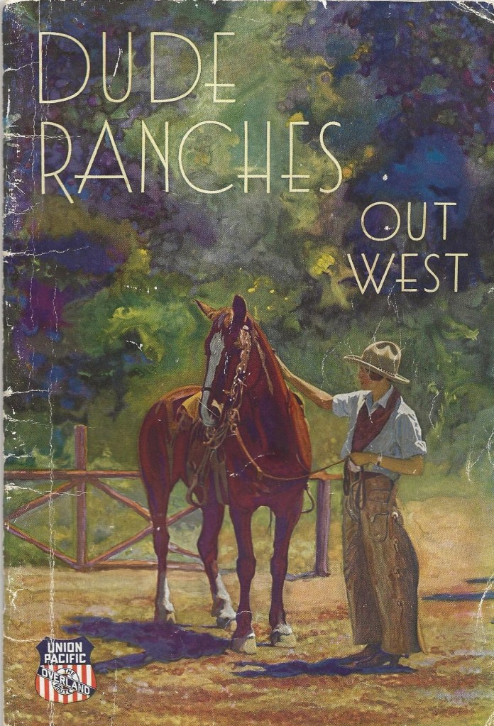 But as the 1920s wore on, more people were buying cars and taking to the road on their own. And sometimes they bypassed the dude ranches. The railroads not only helped the Dude Ranchers’ Association get started, they promoted ranches with beautifully designed brochures and pamphlets.