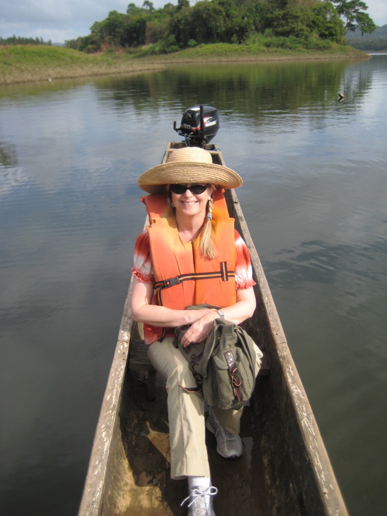 As we floated back onto the lake, I asked Hernán where the village of Gorgona used to be. We motored to a tree-covered peninsula which jutted into a small bay. “Most of it is underneath us,” he said. Then he and the boatman, Jacobo, started talking rapidly in Spanish, and Hernán pointed to a nearby finger of land, saying, “He has friends who have seen some old foundations in there. Do you want to go check it out?”