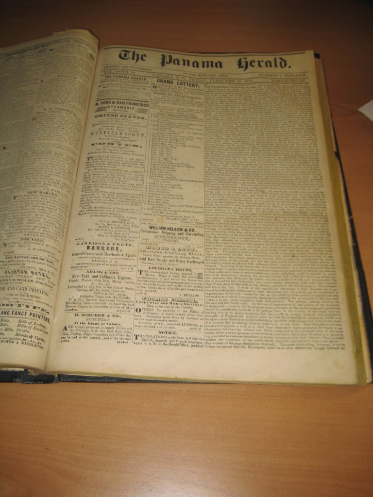 Hernán then did something very special. He took me to the National Library of Panama where the librarian let me view original, 1853 issues of the English-language paper Panama Herald. It was published for the hordes of Americans who crossed the isthmus to get to the gold fields of California and included sailing schedules. There, I was able to find the Isthmus and the date that Levi boarded the ship, which was a history nerd moment I will never forget. (Take THAT, 1906 earthquake and fire.)