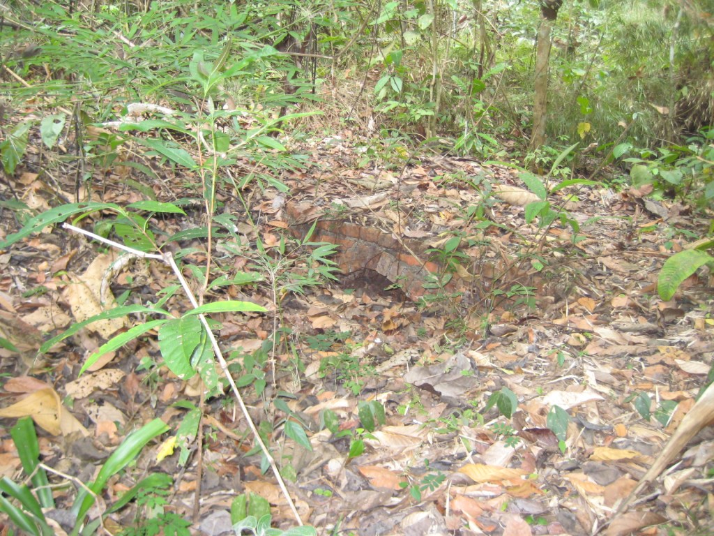 We couldn’t get close to some of the brick pillars because the growth was too thick, but we also found a tiny brick arch set over what looked like a dry creek bed.